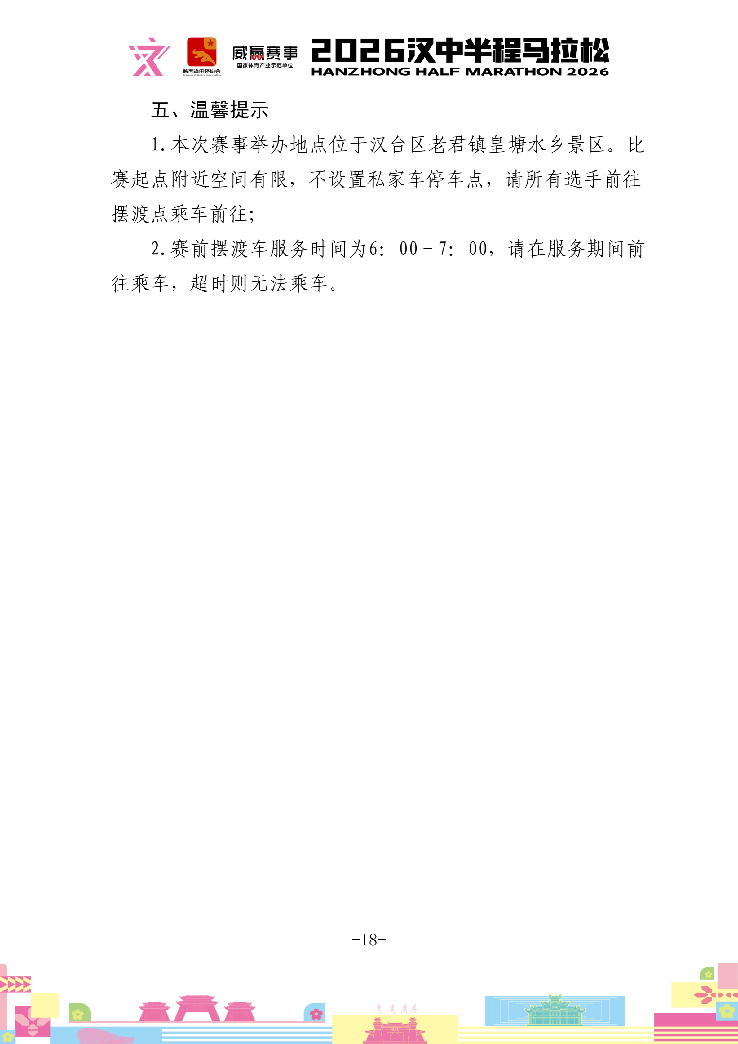 1.半程马拉松在起点指定区域按号段进行存衣,并在存衣包外贴上小号码布,至终点后,到指定区域凭相同号码布取衣;禁止携带危险物品及液体进入比赛现场。