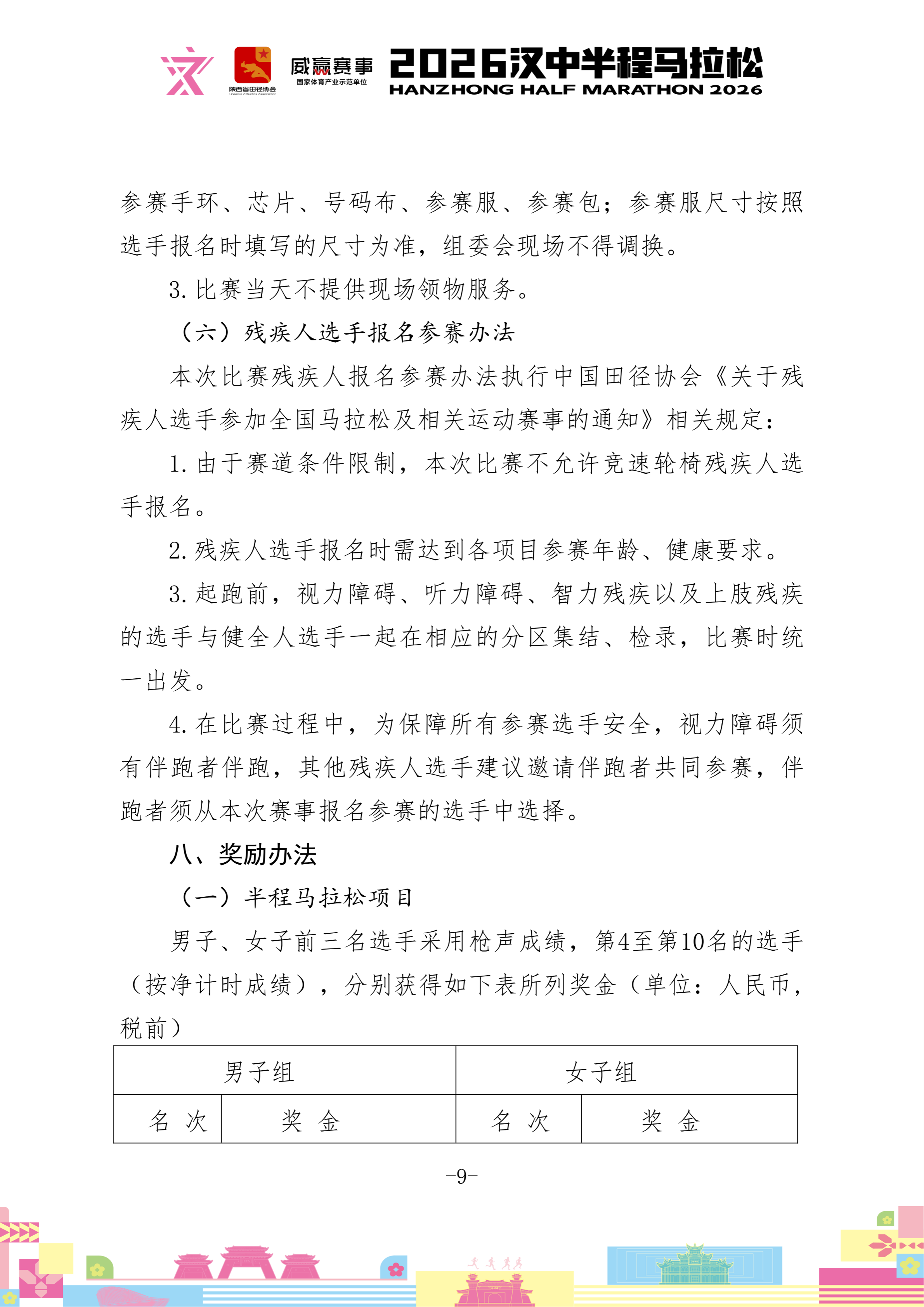 (二)其他规定:按照中国田径协会《关于残疾人选手参加全国马拉松及相关运动赛事的通知》,允许符合参赛条件的残疾人选手参加本次比赛。