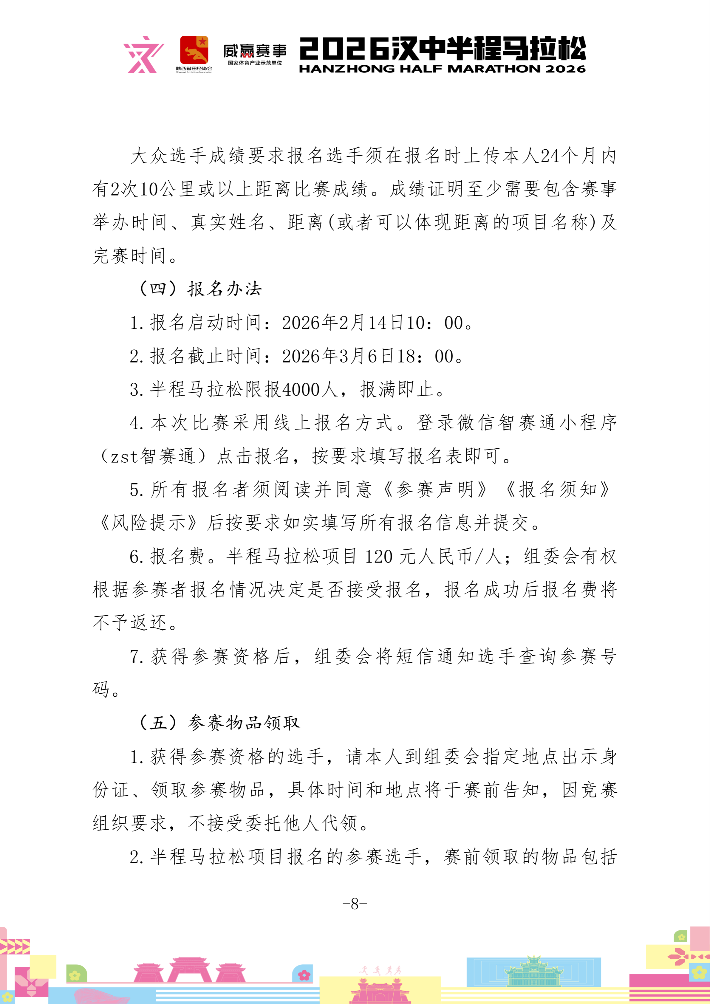 1.半程马拉松项目年龄限18周岁以上(2008年1月1日以前出生)。