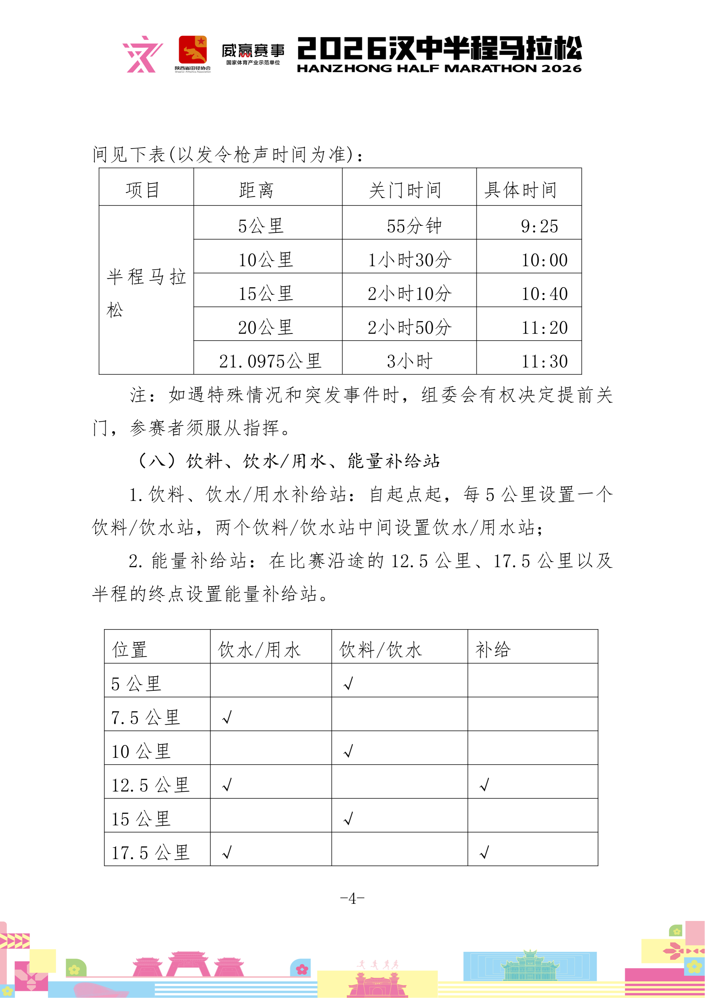 2.能量补给站:在比赛沿途的12.5公里、17.5公里以及半程的终点设置能量补给站。