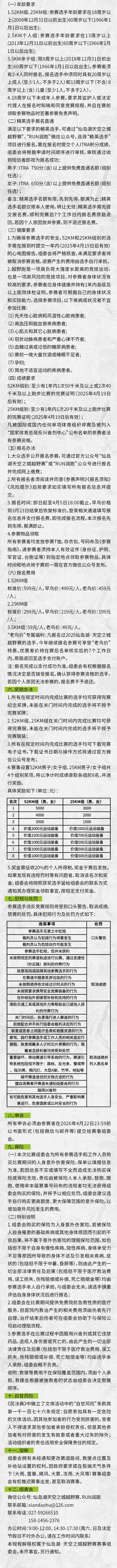 特别提醒:为确保参赛选手的安全,52KM和25KM组别的选手需在报到时提交一年内(2025年4月19日后有效)的心电图报告。组委会将严格核查,未满足要求者将被取消参赛资格,退赛产生的费用由选手自行承担。 本人或法定代理人已认真阅读并全面理解以上内容,且对上述所有内容予以确认,如本人有任何违反本声明书约定之行为,本人将自行承担全部法律责任,并向主办方及其相关方赔偿由此造成的全部损失。