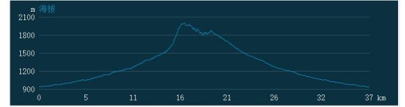 线路长度约37公里,最低海拔932米,最高海拔2005米,海拔落差1073米,累计爬升2088米。