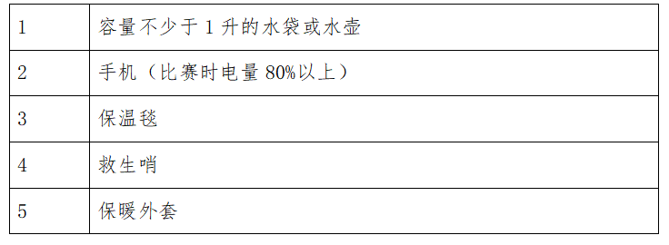 1.赛前检查:所有参赛运动员在报到领取参赛物品前,必须携带强制装备清单中所有装备接受检查,不符合条件者将无法领取参赛物品。